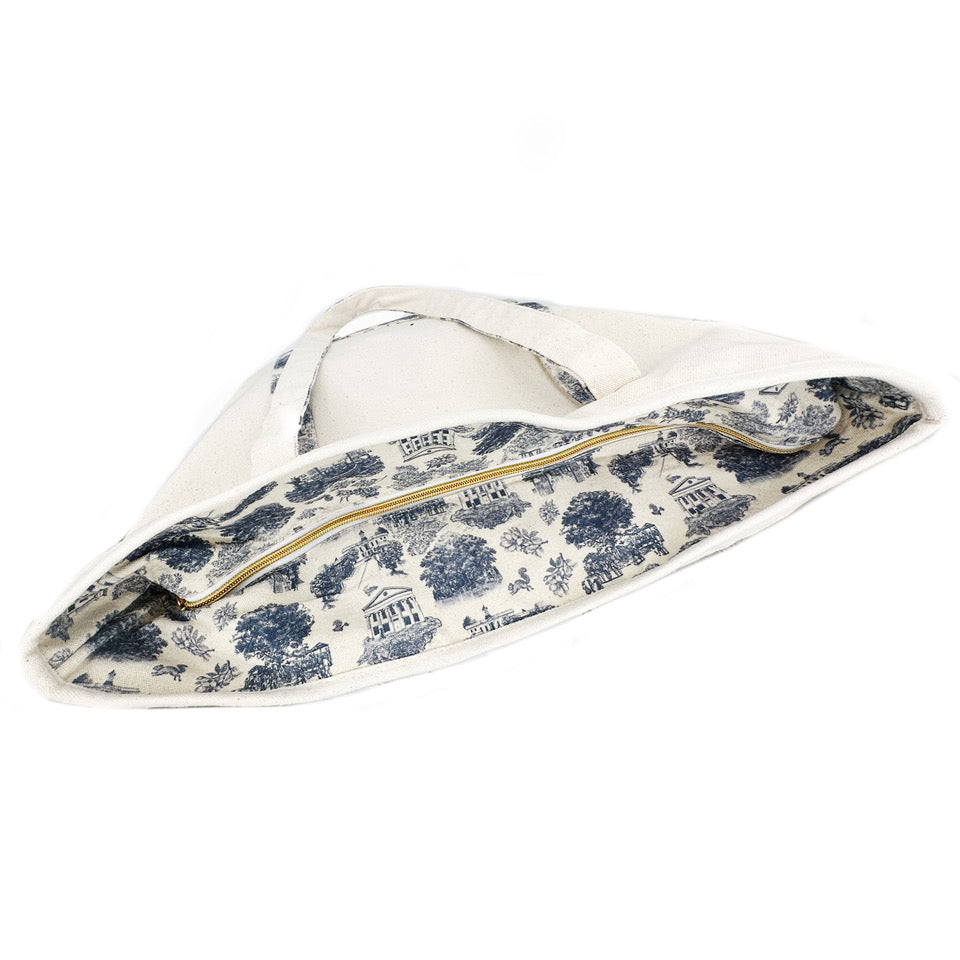 A timeless canvas tote, reimagined with hand-illustrated toile lining the straps - a subtle nod to the places and people that make it yours. Made from heavyweight cotton canvas with structured sides and reinforced stitching. Roomy enough for the market, a weekend away, or just the everyday. Built to last. Made to carry meaning.